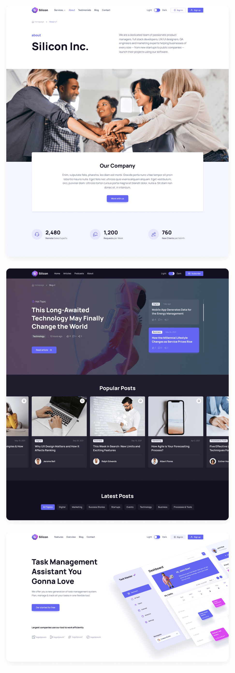 Silicon is built using Sass. Easily change colors, typography and much more. It is the most mature, stable, and powerful CSS extension language in the world.